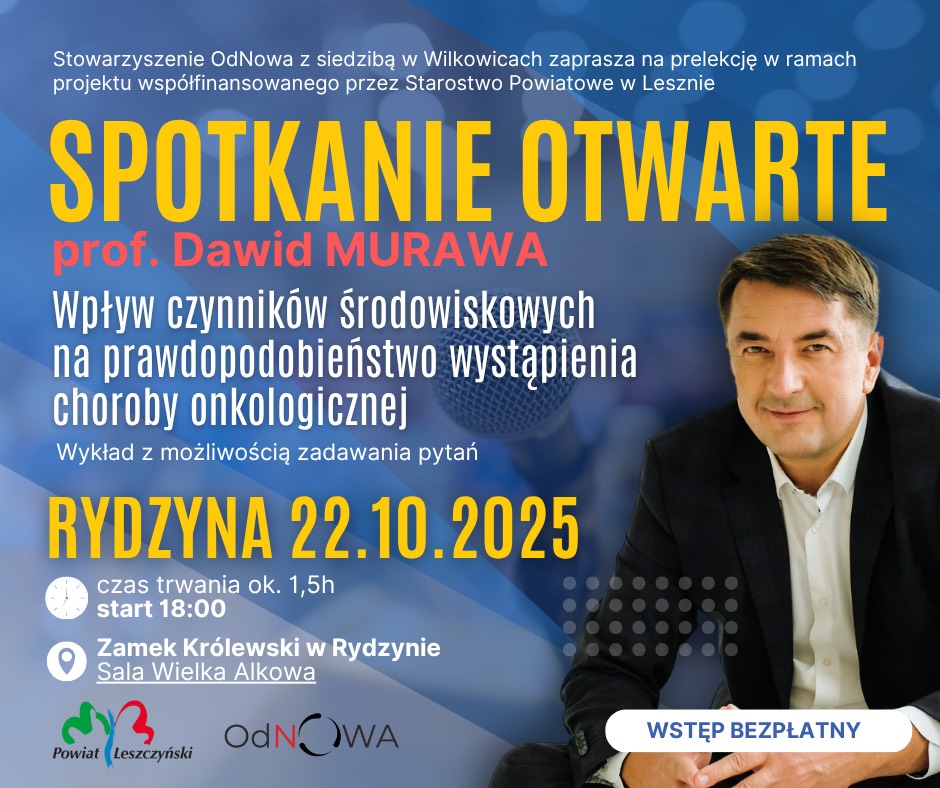 Spotkanie otwarte z prof. Dawidem Murawą w Rydzynie – o wpływie środowiska na ryzyko chorób onkologicznych